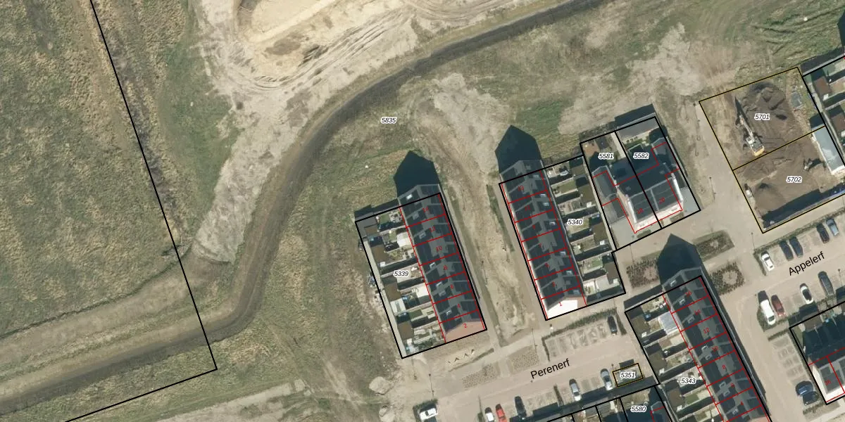 Het perceel waarop Perenerf 14 staat heeft een oppervlakte van 723 m². Dit is een groot perceel. De perceeloppervlakte wordt geregistreerd door het Kadaster. Gedetailleerde informatie over de maten van dit perceel kunt u vinden in het rapport Kadastrale kaart met maatvoering van Perenerf 14.