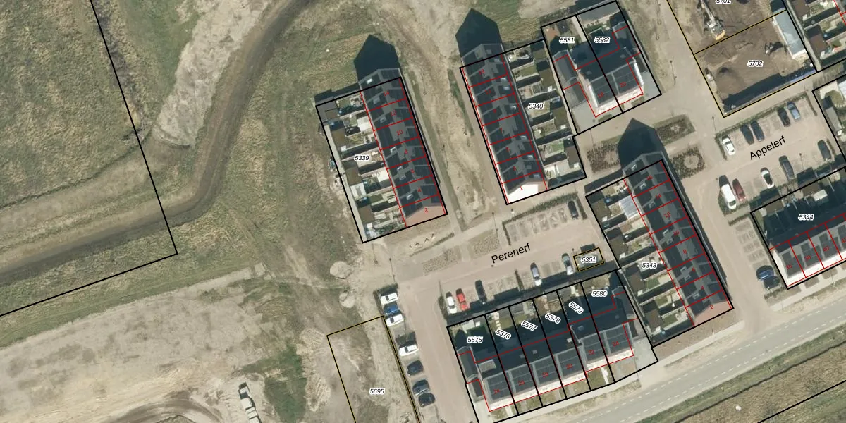 Het perceel waarop Perenerf 2 staat heeft een oppervlakte van 723 m². Dit is een groot perceel. De perceeloppervlakte wordt geregistreerd door het Kadaster. Gedetailleerde informatie over de maten van dit perceel kunt u vinden in het rapport Kadastrale kaart met maatvoering van Perenerf 2.
