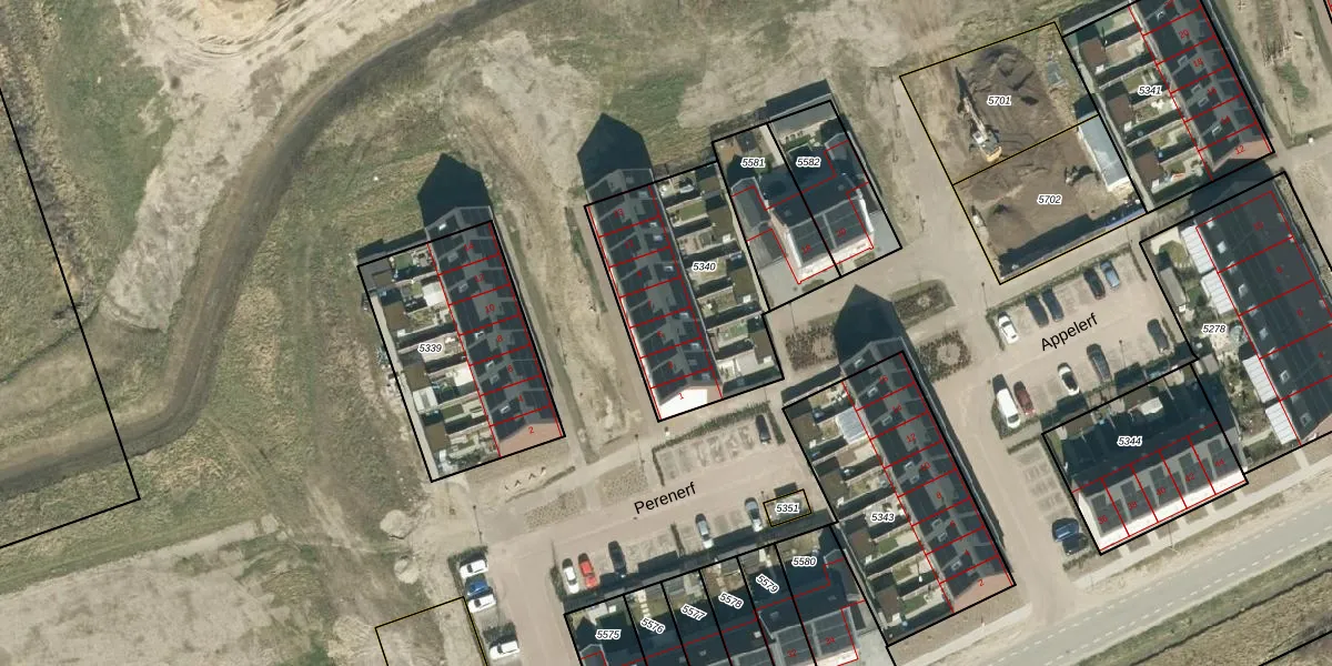 Het perceel waarop Perenerf 5 staat heeft een oppervlakte van 710 m². Dit is een groot perceel. De perceeloppervlakte wordt geregistreerd door het Kadaster. Gedetailleerde informatie over de maten van dit perceel kunt u vinden in het rapport Kadastrale kaart met maatvoering van Perenerf 5.