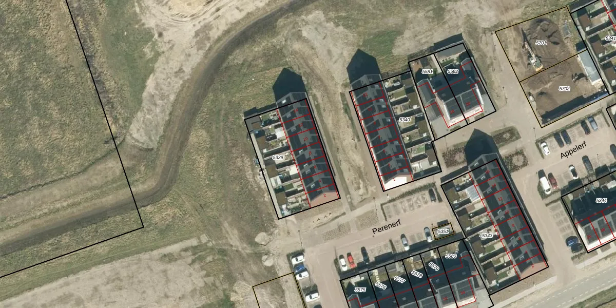 Het perceel waarop Perenerf 8 staat heeft een oppervlakte van 723 m². Dit is een groot perceel. De perceeloppervlakte wordt geregistreerd door het Kadaster. Gedetailleerde informatie over de maten van dit perceel kunt u vinden in het rapport Kadastrale kaart met maatvoering van Perenerf 8.