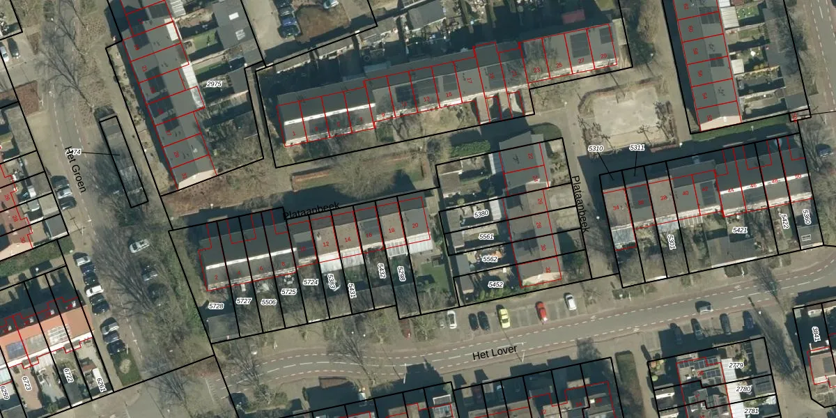Plataanbeek 20 is gelegen op kadastraal perceel VHV01D5562. Deze kadastrale aanduiding is uniek en wordt gebruikt door het Kadaster om eigendomsrechten en andere zakelijke rechten vast te leggen. Het perceel maakt onderdeel uit van de kadastrale gemeente Veldhoven.