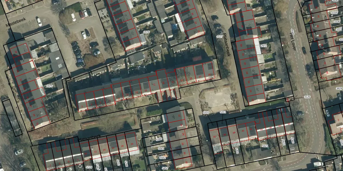 Het perceel waarop Plataanbeek 21 staat heeft een oppervlakte van 6424 m². Dit is een zeer groot perceel. De perceeloppervlakte wordt geregistreerd door het Kadaster. Gedetailleerde informatie over de maten van dit perceel kunt u vinden in het rapport Kadastrale kaart met maatvoering van Plataanbeek 21.