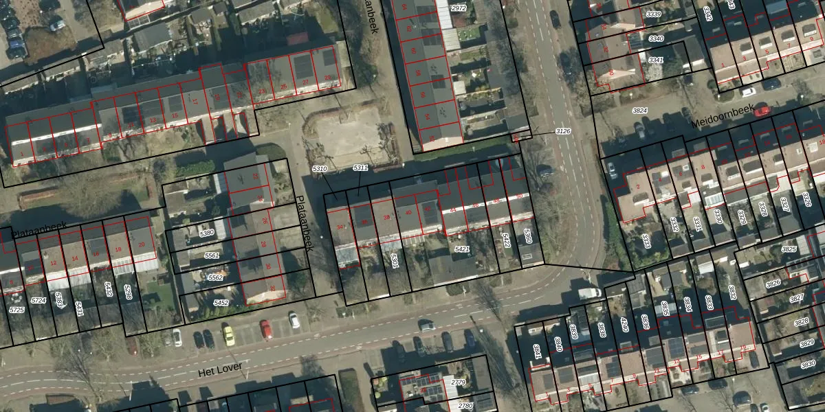 Plataanbeek 40 is gelegen op kadastraal perceel VHV01D5421. Deze kadastrale aanduiding is uniek en wordt gebruikt door het Kadaster om eigendomsrechten en andere zakelijke rechten vast te leggen. Het perceel maakt onderdeel uit van de kadastrale gemeente Veldhoven.