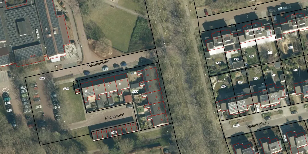 Platanenlaan 40 is gelegen op kadastraal perceel VHV01H1054. Deze kadastrale aanduiding is uniek en wordt gebruikt door het Kadaster om eigendomsrechten en andere zakelijke rechten vast te leggen. Het perceel maakt onderdeel uit van de kadastrale gemeente Veldhoven.