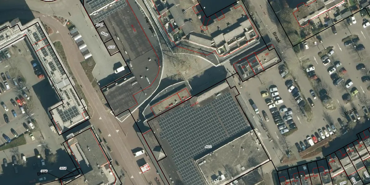 Het perceel waarop Pleintjes 108 staat heeft een oppervlakte van 1,3 ha. Dit is een zeer groot perceel. De perceeloppervlakte wordt geregistreerd door het Kadaster. Gedetailleerde informatie over de maten van dit perceel kunt u vinden in het rapport Kadastrale kaart met maatvoering van Pleintjes 108.