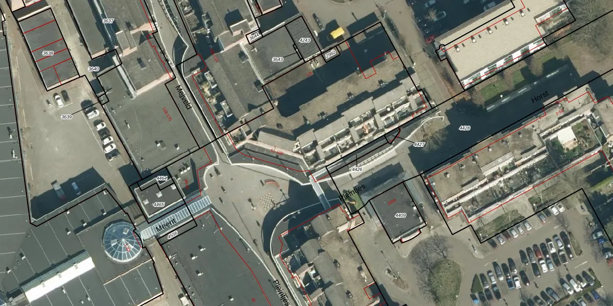 Het perceel waarop Pleintjes 77 staat heeft een oppervlakte van 1,3 ha. Dit is een zeer groot perceel. De perceeloppervlakte wordt geregistreerd door het Kadaster. Gedetailleerde informatie over de maten van dit perceel kunt u vinden in het rapport Kadastrale kaart met maatvoering van Pleintjes 77.