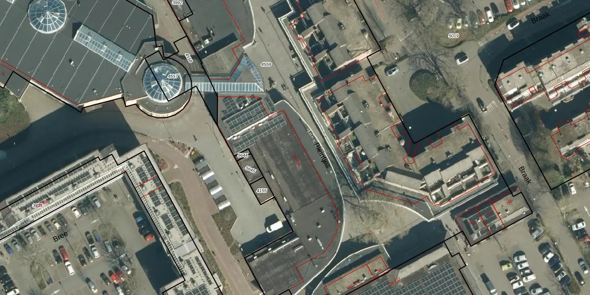 Het perceel waarop Pleintjes 86 staat heeft een oppervlakte van 1,3 ha. Dit is een zeer groot perceel. De perceeloppervlakte wordt geregistreerd door het Kadaster. Gedetailleerde informatie over de maten van dit perceel kunt u vinden in het rapport Kadastrale kaart met maatvoering van Pleintjes 86.