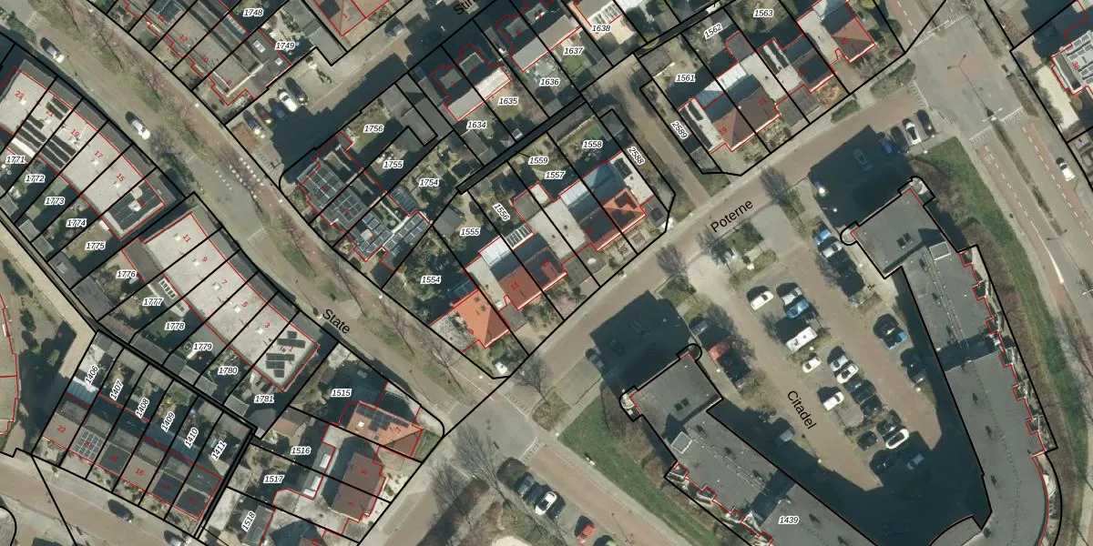 Het perceel waarop Poterne 13 staat heeft een oppervlakte van 264 m². Dit is een middelgroot perceel. De perceeloppervlakte wordt geregistreerd door het Kadaster. Gedetailleerde informatie over de maten van dit perceel kunt u vinden in het rapport Kadastrale kaart met maatvoering van Poterne 13.