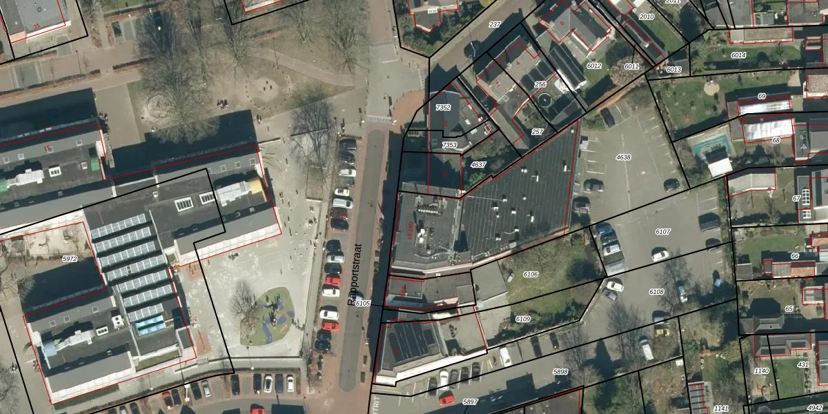 Rapportstraat 12-D is gelegen op kadastraal perceel VHV01E4638. Deze kadastrale aanduiding is uniek en wordt gebruikt door het Kadaster om eigendomsrechten en andere zakelijke rechten vast te leggen. Het perceel maakt onderdeel uit van de kadastrale gemeente Veldhoven.