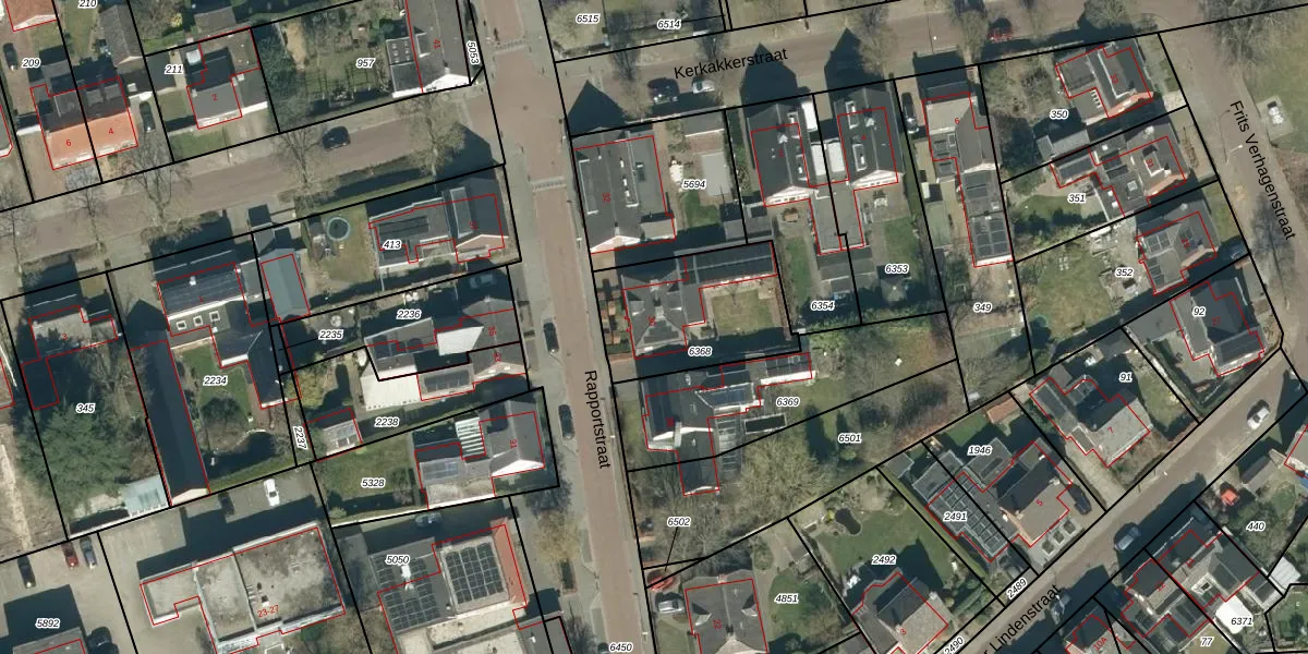 Rapportstraat 30 is gelegen op kadastraal perceel VHV01E6368. Deze kadastrale aanduiding is uniek en wordt gebruikt door het Kadaster om eigendomsrechten en andere zakelijke rechten vast te leggen. Het perceel maakt onderdeel uit van de kadastrale gemeente Veldhoven.