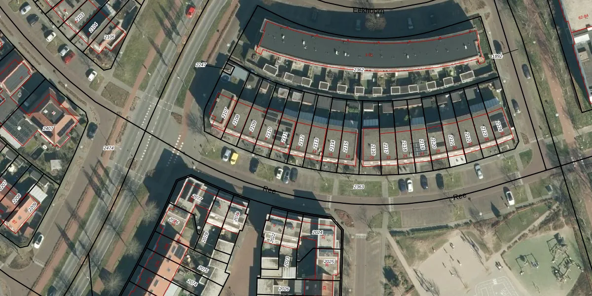 Gebruik de zoekbalk of klik op een perceel voor informatie over de adressen binnen dit perceel.