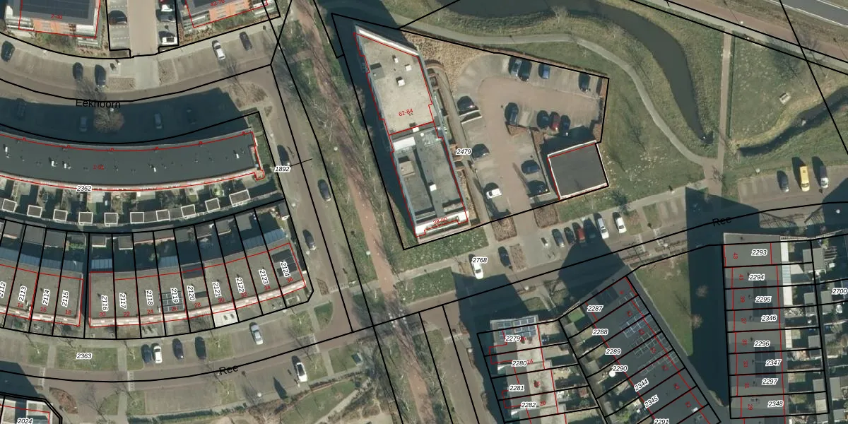 Het perceel waarop Ree 48 staat heeft een oppervlakte van 2265 m². Dit is een zeer groot perceel. De perceeloppervlakte wordt geregistreerd door het Kadaster. Gedetailleerde informatie over de maten van dit perceel kunt u vinden in het rapport Kadastrale kaart met maatvoering van Ree 48.