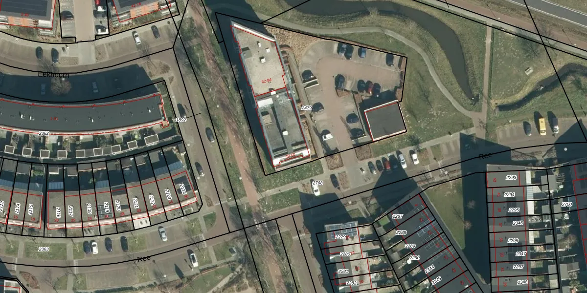 Het perceel waarop Ree 54 staat heeft een oppervlakte van 2265 m². Dit is een zeer groot perceel. De perceeloppervlakte wordt geregistreerd door het Kadaster. Gedetailleerde informatie over de maten van dit perceel kunt u vinden in het rapport Kadastrale kaart met maatvoering van Ree 54.