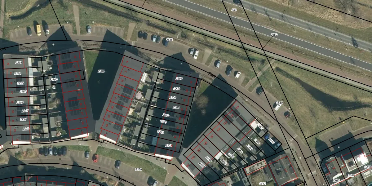 Gebruik de zoekbalk of klik op een perceel voor informatie over de adressen binnen dit perceel.