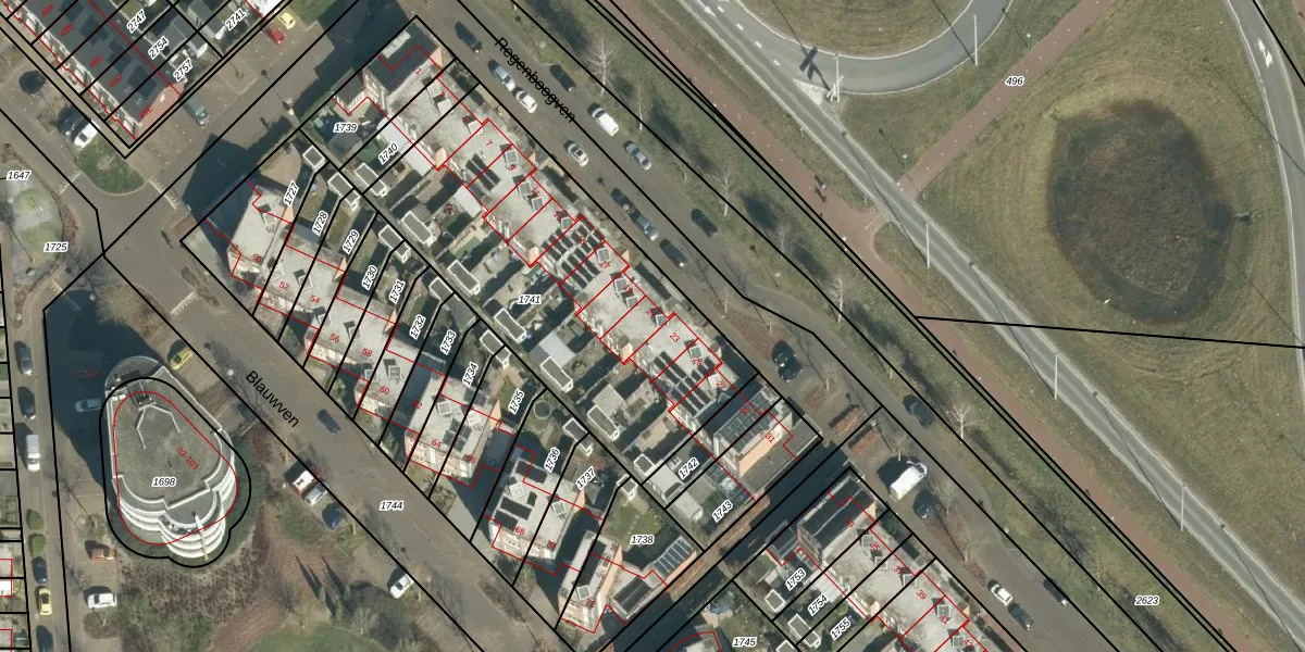Het perceel waarop Regenboogven 21 staat heeft een oppervlakte van 1544 m². Dit is een zeer groot perceel. De perceeloppervlakte wordt geregistreerd door het Kadaster. Gedetailleerde informatie over de maten van dit perceel kunt u vinden in het rapport Kadastrale kaart met maatvoering van Regenboogven 21.