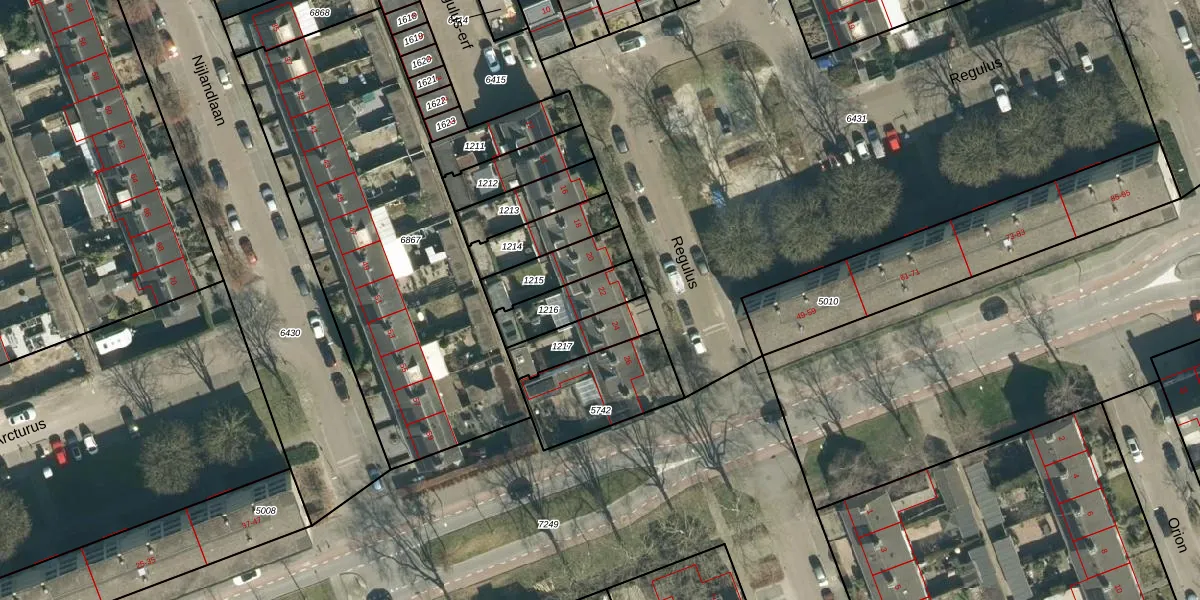 Het perceel waarop Regulus 22 staat heeft een oppervlakte van 152 m². Dit is een middelgroot perceel. De perceeloppervlakte wordt geregistreerd door het Kadaster. Gedetailleerde informatie over de maten van dit perceel kunt u vinden in het rapport Kadastrale kaart met maatvoering van Regulus 22.
