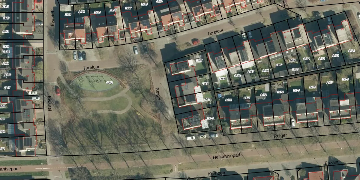 Gebruik de zoekbalk of klik op een perceel voor informatie over de adressen binnen dit perceel.