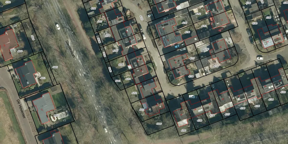 Het perceel waarop het adres ligt is VHV01-E-4203. De afkorting 'VHV01' staat voor kadastrale gemeente Veldhoven. De gemiddelde perceelgrootte in Veldhoven is 1485,46 m². Dit perceel is kleiner: de perceeloppervlakte bedraagt 261 m². Het grootste perceel in de kadastrale gemeente is 78,9 ha. Het kleinste perceel heeft een oppervlakte van 0 m². Er zijn geen andere adressen aanwezig op het perceel. In de Basisregistratie Kadaster (BRK) werden de grenzen van het perceel geregistreerd op 28-01-2009.