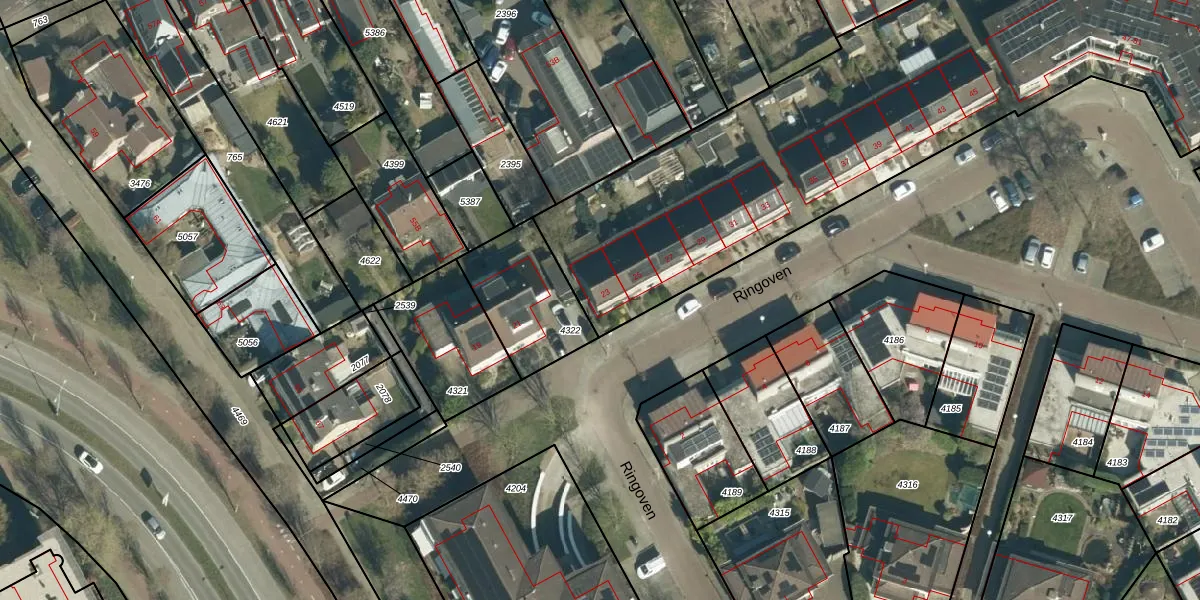 Het perceel waarop Ringoven 23 staat heeft een oppervlakte van 3352 m². Dit is een zeer groot perceel. De perceeloppervlakte wordt geregistreerd door het Kadaster. Gedetailleerde informatie over de maten van dit perceel kunt u vinden in het rapport Kadastrale kaart met maatvoering van Ringoven 23.