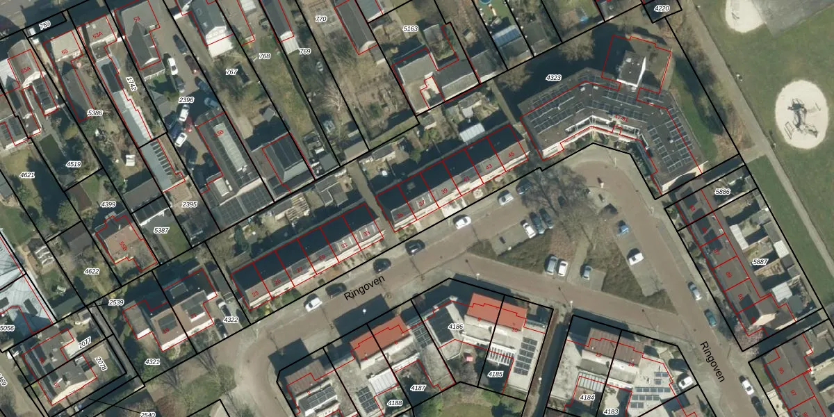 Het perceel waarop Ringoven 37 staat heeft een oppervlakte van 3352 m². Dit is een zeer groot perceel. De perceeloppervlakte wordt geregistreerd door het Kadaster. Gedetailleerde informatie over de maten van dit perceel kunt u vinden in het rapport Kadastrale kaart met maatvoering van Ringoven 37.