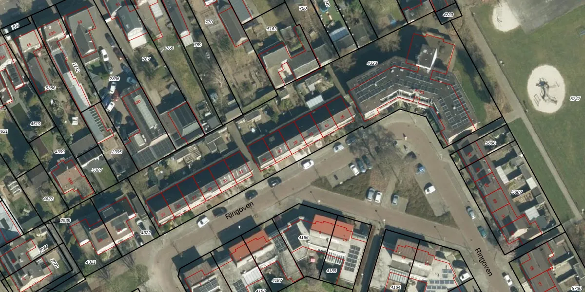 Ringoven 39 is gelegen op kadastraal perceel VHV01D4323. Deze kadastrale aanduiding is uniek en wordt gebruikt door het Kadaster om eigendomsrechten en andere zakelijke rechten vast te leggen. Het perceel maakt onderdeel uit van de kadastrale gemeente Veldhoven.