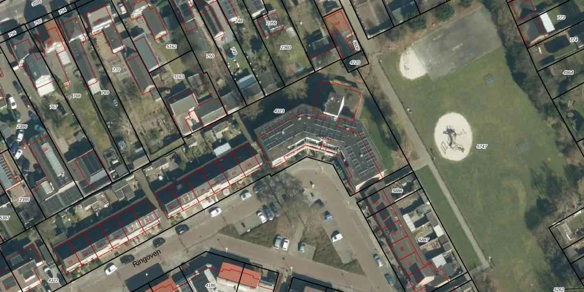 Het perceel waarop Ringoven 49 staat heeft een oppervlakte van 3352 m². Dit is een zeer groot perceel. De perceeloppervlakte wordt geregistreerd door het Kadaster. Gedetailleerde informatie over de maten van dit perceel kunt u vinden in het rapport Kadastrale kaart met maatvoering van Ringoven 49.