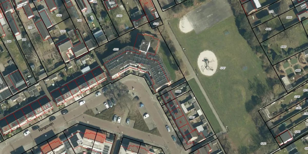 Het perceel waarop Ringoven 55 staat heeft een oppervlakte van 3352 m². Dit is een zeer groot perceel. De perceeloppervlakte wordt geregistreerd door het Kadaster. Gedetailleerde informatie over de maten van dit perceel kunt u vinden in het rapport Kadastrale kaart met maatvoering van Ringoven 55.