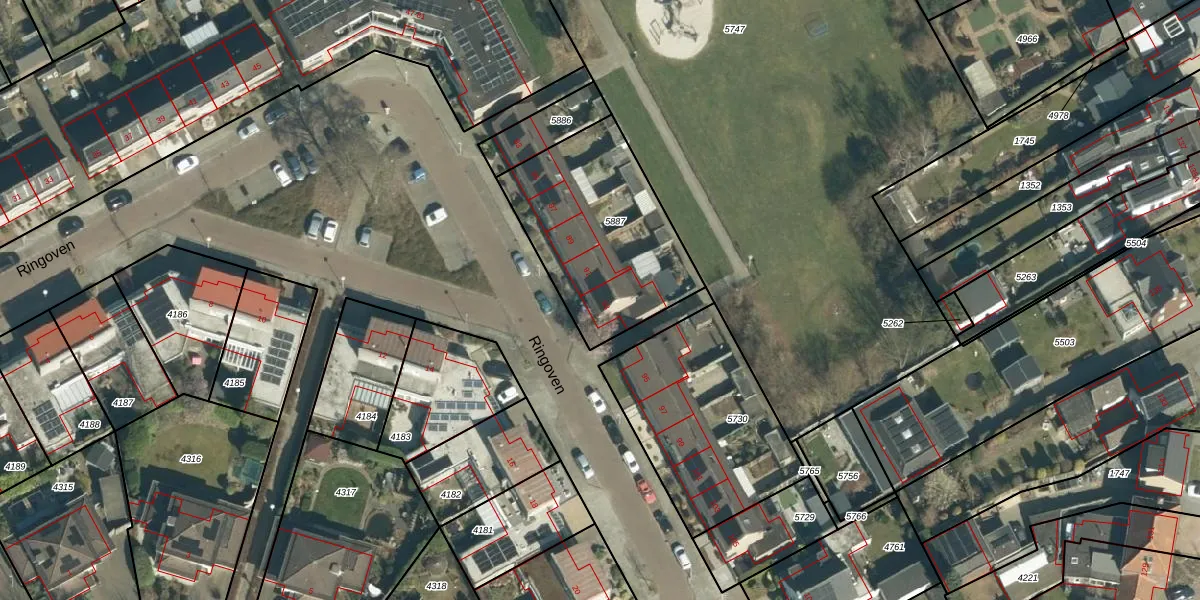 Het perceel waarop Ringoven 93 staat heeft een oppervlakte van 721 m². Dit is een groot perceel. De perceeloppervlakte wordt geregistreerd door het Kadaster. Gedetailleerde informatie over de maten van dit perceel kunt u vinden in het rapport Kadastrale kaart met maatvoering van Ringoven 93.