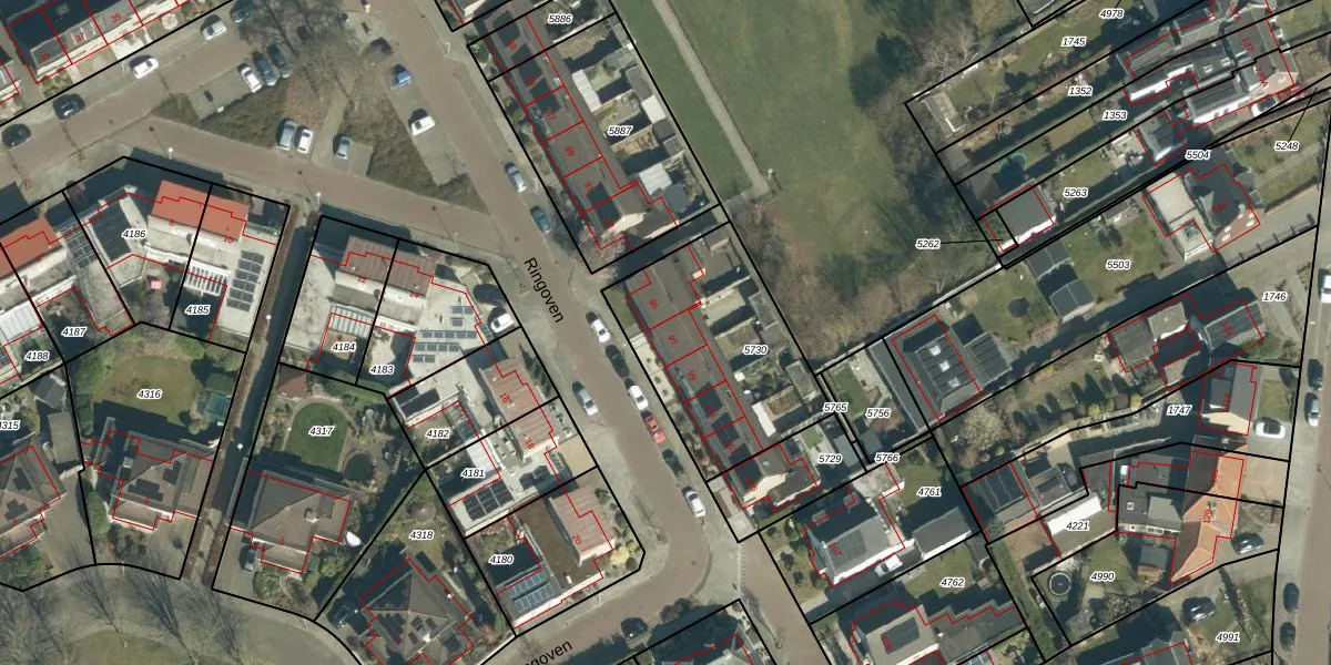 Het perceel waarop Ringoven 97 staat heeft een oppervlakte van 722 m². Dit is een groot perceel. De perceeloppervlakte wordt geregistreerd door het Kadaster. Gedetailleerde informatie over de maten van dit perceel kunt u vinden in het rapport Kadastrale kaart met maatvoering van Ringoven 97.
