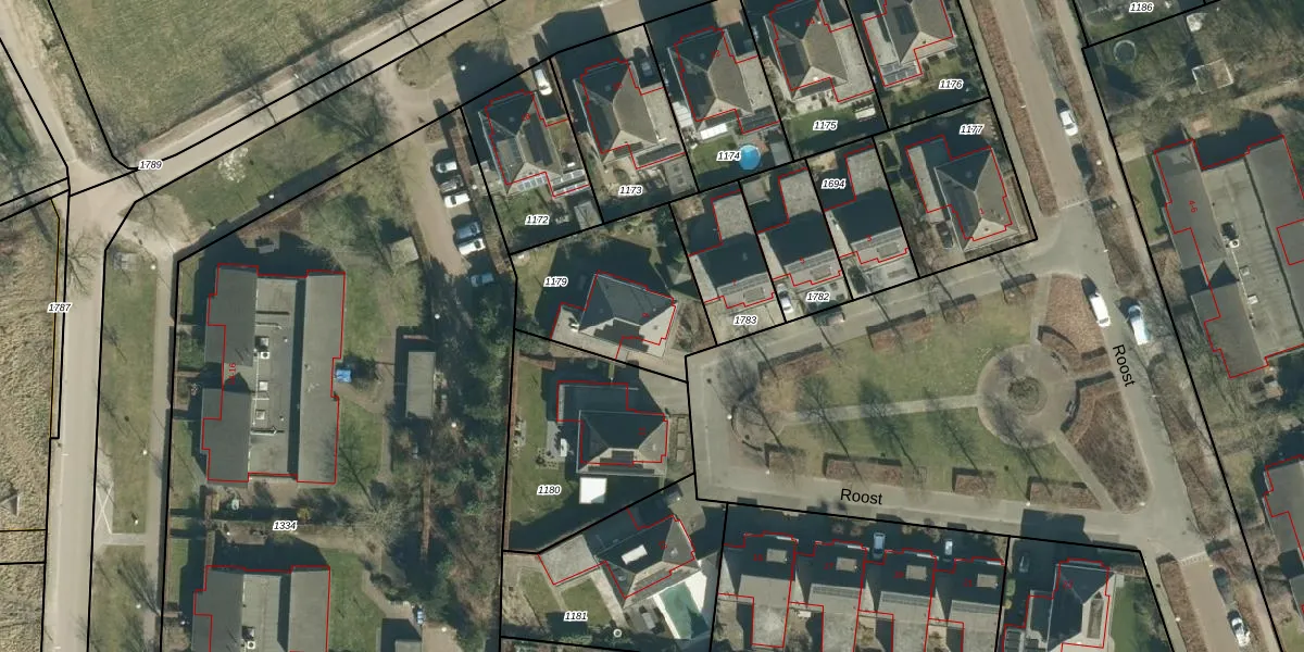 Het perceel waarop Roost 9 staat heeft een oppervlakte van 553 m². Dit is een groot perceel. De perceeloppervlakte wordt geregistreerd door het Kadaster. Gedetailleerde informatie over de maten van dit perceel kunt u vinden in het rapport Kadastrale kaart met maatvoering van Roost 9.