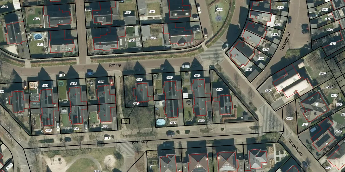 Het perceel waarop Rosep 12 staat heeft een oppervlakte van 263 m². Dit is een middelgroot perceel. De perceeloppervlakte wordt geregistreerd door het Kadaster. Gedetailleerde informatie over de maten van dit perceel kunt u vinden in het rapport Kadastrale kaart met maatvoering van Rosep 12.