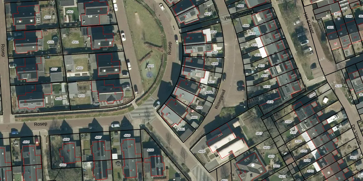 Rosep 20 is gelegen op kadastraal perceel VHV01C4459. Deze kadastrale aanduiding is uniek en wordt gebruikt door het Kadaster om eigendomsrechten en andere zakelijke rechten vast te leggen. Het perceel maakt onderdeel uit van de kadastrale gemeente Veldhoven.