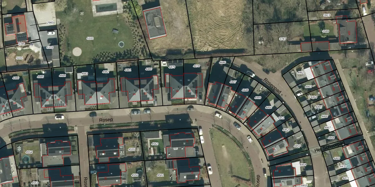 Het perceel waarop Rosep 48 staat heeft een oppervlakte van 322 m². Dit is een groot perceel. De perceeloppervlakte wordt geregistreerd door het Kadaster. Gedetailleerde informatie over de maten van dit perceel kunt u vinden in het rapport Kadastrale kaart met maatvoering van Rosep 48.