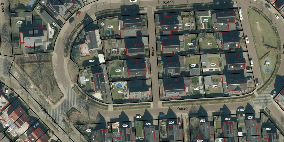 Het perceel waarop Rosep 7 staat heeft een oppervlakte van 459 m². Dit is een groot perceel. De perceeloppervlakte wordt geregistreerd door het Kadaster. Gedetailleerde informatie over de maten van dit perceel kunt u vinden in het rapport Kadastrale kaart met maatvoering van Rosep 7.