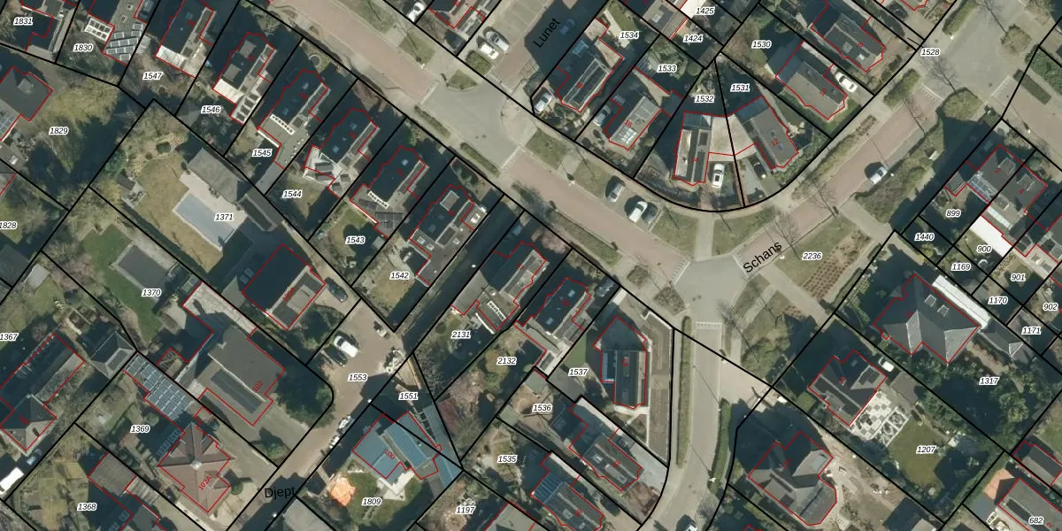 Het perceel waarop Schans 17 staat heeft een oppervlakte van 398 m². Dit is een groot perceel. De perceeloppervlakte wordt geregistreerd door het Kadaster. Gedetailleerde informatie over de maten van dit perceel kunt u vinden in het rapport Kadastrale kaart met maatvoering van Schans 17.