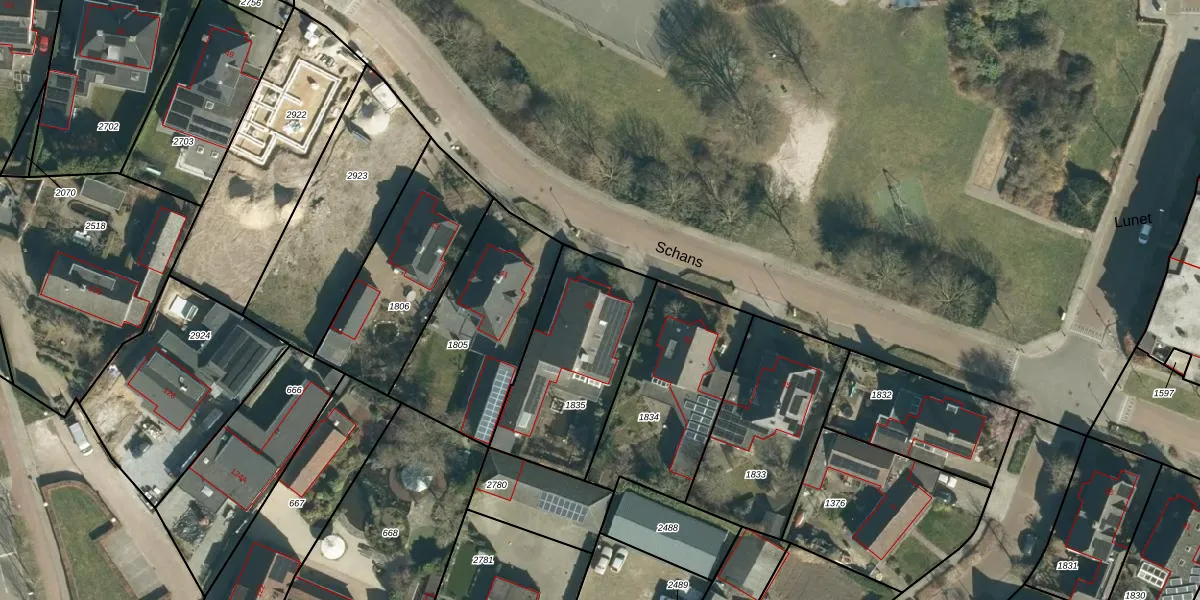 Het perceel waarop Schans 39 staat heeft een oppervlakte van 618 m². Dit is een groot perceel. De perceeloppervlakte wordt geregistreerd door het Kadaster. Gedetailleerde informatie over de maten van dit perceel kunt u vinden in het rapport Kadastrale kaart met maatvoering van Schans 39.