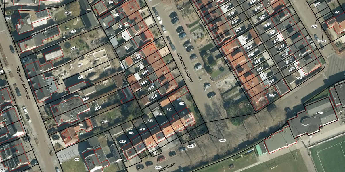 Schepenenstraat 1 is gelegen op kadastraal perceel VHV01D2739. Deze kadastrale aanduiding is uniek en wordt gebruikt door het Kadaster om eigendomsrechten en andere zakelijke rechten vast te leggen. Het perceel maakt onderdeel uit van de kadastrale gemeente Veldhoven.