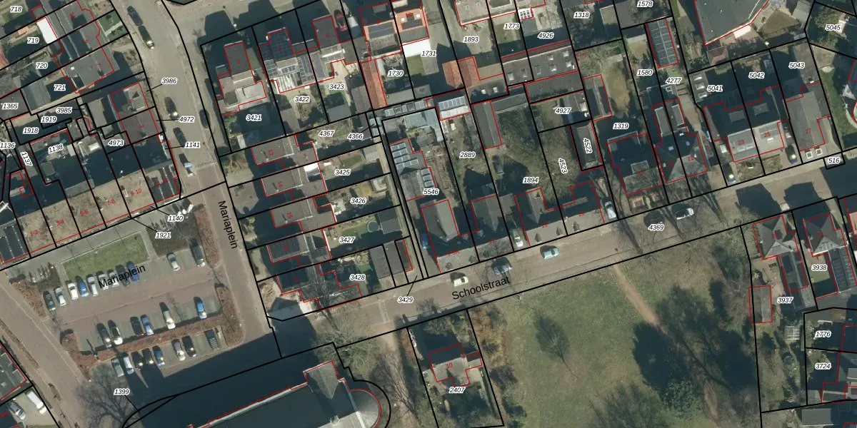 Schoolstraat 9-A is gelegen op kadastraal perceel VHV01D5546. Deze kadastrale aanduiding is uniek en wordt gebruikt door het Kadaster om eigendomsrechten en andere zakelijke rechten vast te leggen. Het perceel maakt onderdeel uit van de kadastrale gemeente Veldhoven.