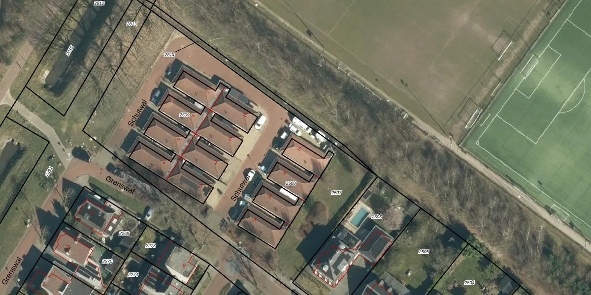 Schutwal 18 is gelegen op kadastraal perceel VHV01K2508. Deze kadastrale aanduiding is uniek en wordt gebruikt door het Kadaster om eigendomsrechten en andere zakelijke rechten vast te leggen. Het perceel maakt onderdeel uit van de kadastrale gemeente Veldhoven.