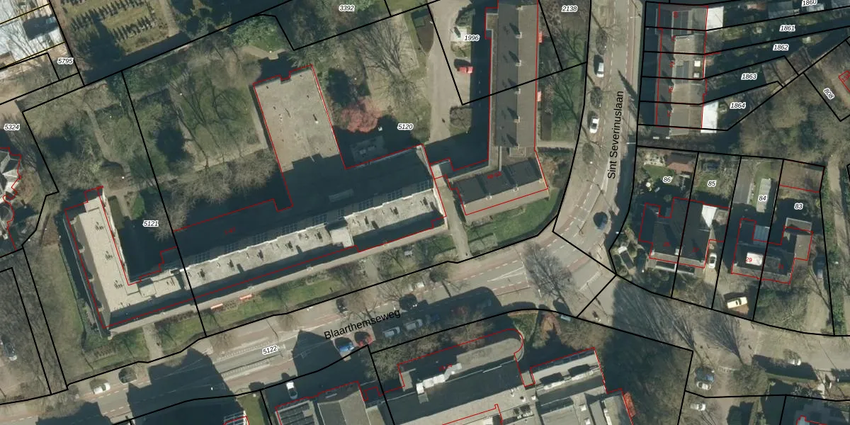 Het perceel waarop het adres ligt is VHV01-D-5120. De afkorting 'VHV01' staat voor kadastrale gemeente Veldhoven. De gemiddelde perceeloppervlakte in de kadastrale gemeente Veldhoven is 1489,56 m². Dit perceel is met zijn 5458 m² dus groter dan gemiddeld. Het grootste perceel in de kadastrale gemeente is 78,9 ha. Het kleinste perceel heeft een oppervlakte van 0 m². Er zijn 39 adressen aanwezig op het perceel. De laatste wijziging in het de Basisregistratie Kadaster (BRK) was op 16-01-2009.