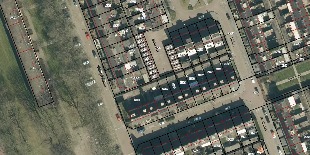 Het perceel waarop Siriuserf 6 staat heeft een oppervlakte van 19 m². Dit is een klein perceel. De perceeloppervlakte wordt geregistreerd door het Kadaster. Gedetailleerde informatie over de maten van dit perceel kunt u vinden in het rapport Kadastrale kaart met maatvoering van Siriuserf 6.