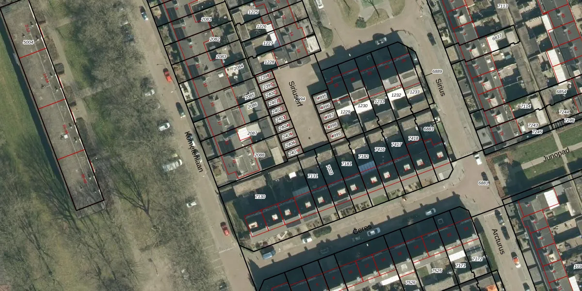 Het perceel waarop Siriuserf 7 staat heeft een oppervlakte van 18 m². Dit is een klein perceel. De perceeloppervlakte wordt geregistreerd door het Kadaster. Gedetailleerde informatie over de maten van dit perceel kunt u vinden in het rapport Kadastrale kaart met maatvoering van Siriuserf 7.