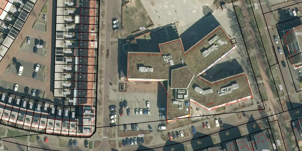 Smelen 38-F is gelegen op kadastraal perceel VHV01F2383. Deze kadastrale aanduiding is uniek en wordt gebruikt door het Kadaster om eigendomsrechten en andere zakelijke rechten vast te leggen. Het perceel maakt onderdeel uit van de kadastrale gemeente Veldhoven.
