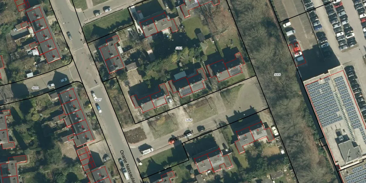 Sophiadreef 5 is gelegen op kadastraal perceel VHV01D1261. Deze kadastrale aanduiding is uniek en wordt gebruikt door het Kadaster om eigendomsrechten en andere zakelijke rechten vast te leggen. Het perceel maakt onderdeel uit van de kadastrale gemeente Veldhoven.