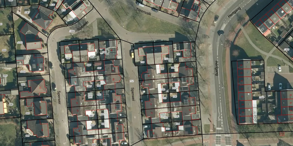 Het perceel waarop Sperwer 28 staat heeft een oppervlakte van 201 m². Dit is een middelgroot perceel. De perceeloppervlakte wordt geregistreerd door het Kadaster. Gedetailleerde informatie over de maten van dit perceel kunt u vinden in het rapport Kadastrale kaart met maatvoering van Sperwer 28.