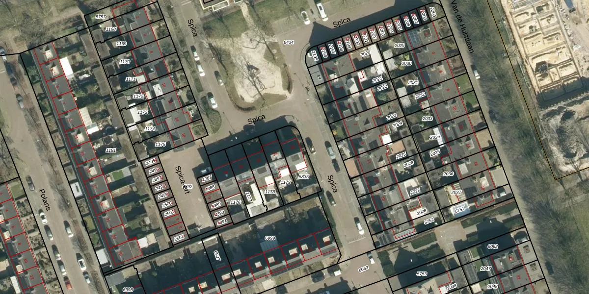 Het perceel waarop Spica 26 staat heeft een oppervlakte van 189 m². Dit is een middelgroot perceel. De perceeloppervlakte wordt geregistreerd door het Kadaster. Gedetailleerde informatie over de maten van dit perceel kunt u vinden in het rapport Kadastrale kaart met maatvoering van Spica 26.