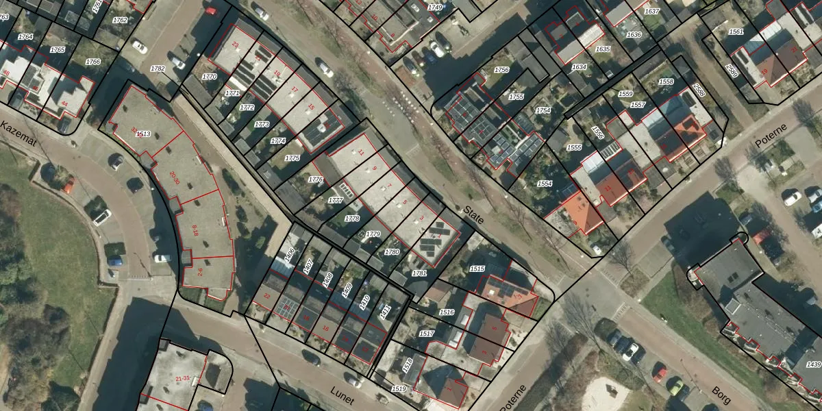 Gebruik de zoekbalk of klik op een perceel voor informatie over de adressen binnen dit perceel.