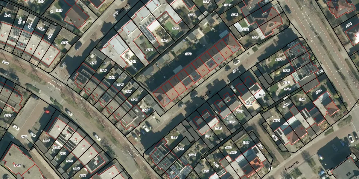 Het perceel waarop Stinze 5 staat heeft een oppervlakte van 1562 m². Dit is een zeer groot perceel. De perceeloppervlakte wordt geregistreerd door het Kadaster. Gedetailleerde informatie over de maten van dit perceel kunt u vinden in het rapport Kadastrale kaart met maatvoering van Stinze 5.
