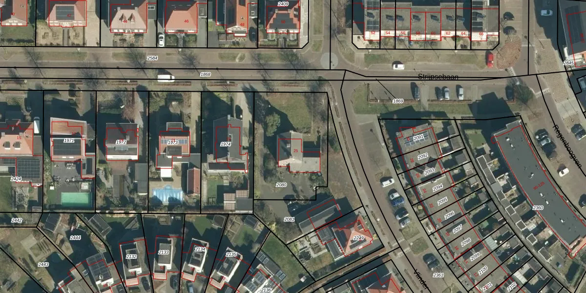 Strijpsebaan 25 is gelegen op kadastraal perceel VHV01F2080. Deze kadastrale aanduiding is uniek en wordt gebruikt door het Kadaster om eigendomsrechten en andere zakelijke rechten vast te leggen. Het perceel maakt onderdeel uit van de kadastrale gemeente Veldhoven.