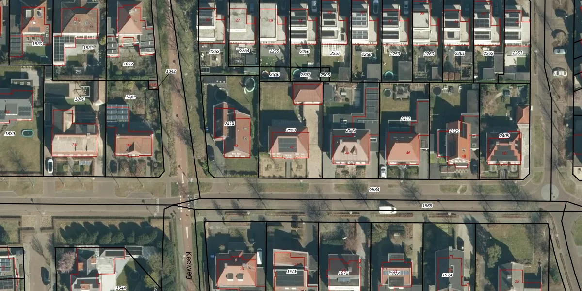 Gebruik de zoekbalk of klik op een perceel voor informatie over de adressen binnen dit perceel.